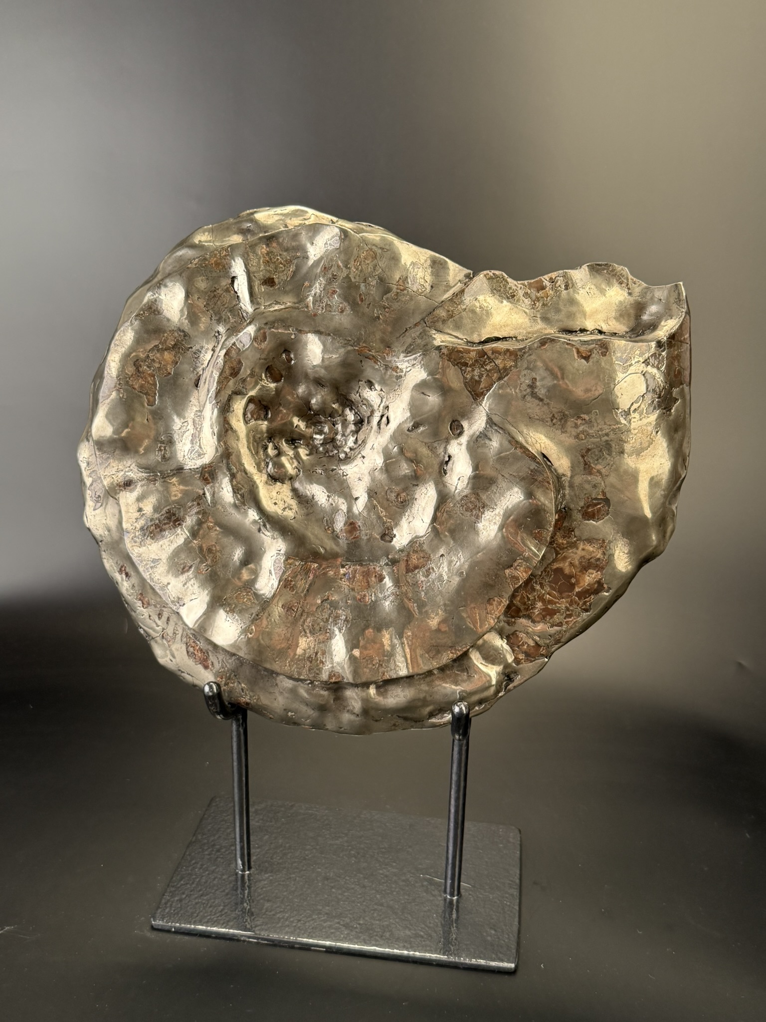 Аммонит Краспедодискус найден на территории Ульяновской области. Возраст находки 130 мл.лет. Нижний мел, готеривский ярус. Образец имеет пиритовое замещение.