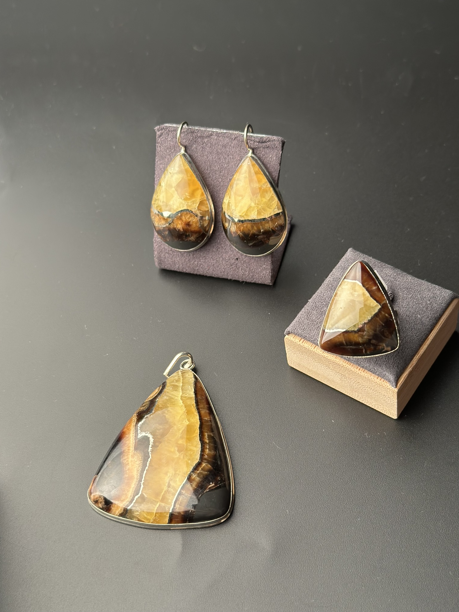 Аммонитовая жеода пара на серги