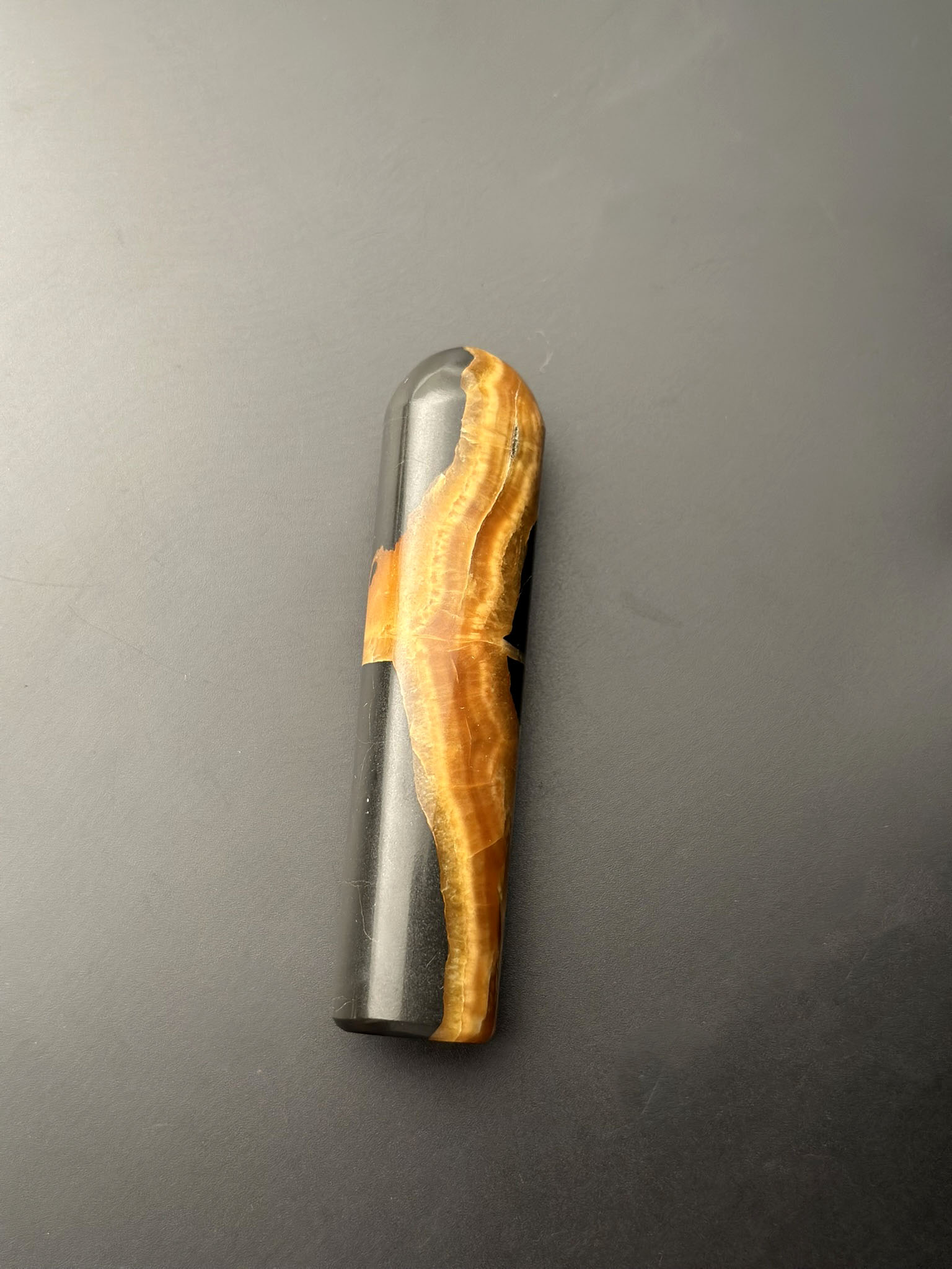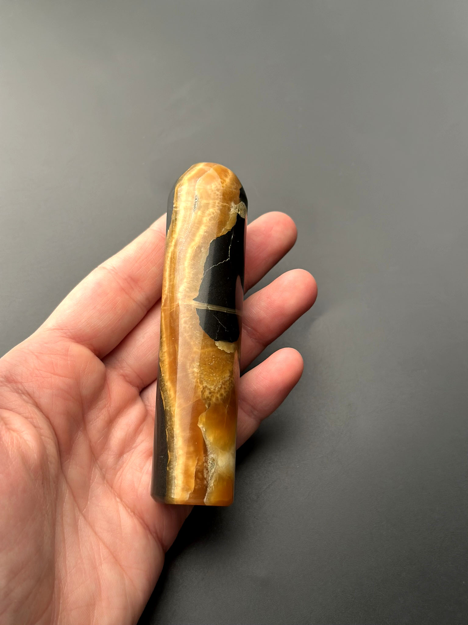 Массажер цилиндр с закругленным краем из натурального камня симбирцит.