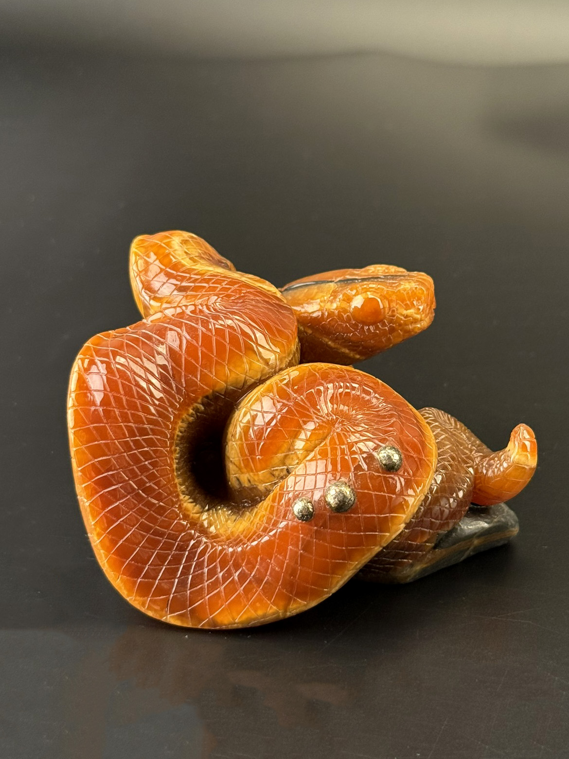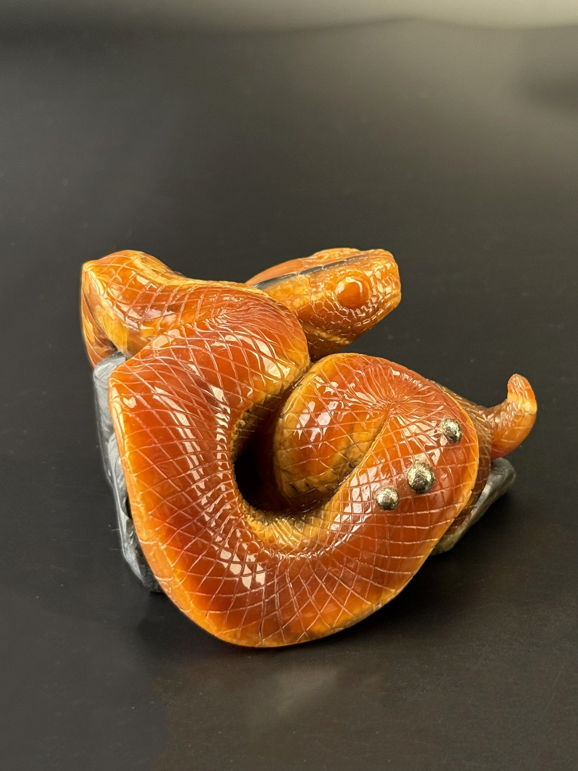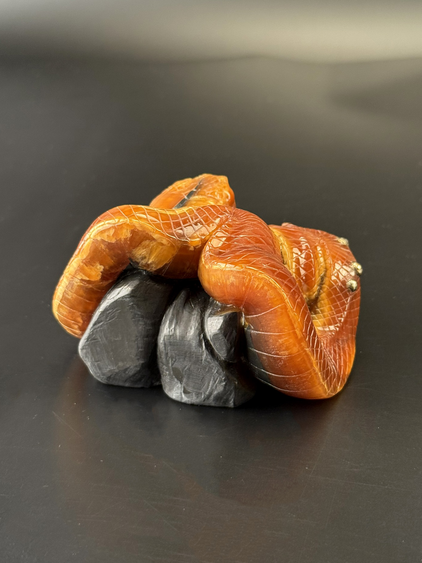 Резная фигурка Змея на камне