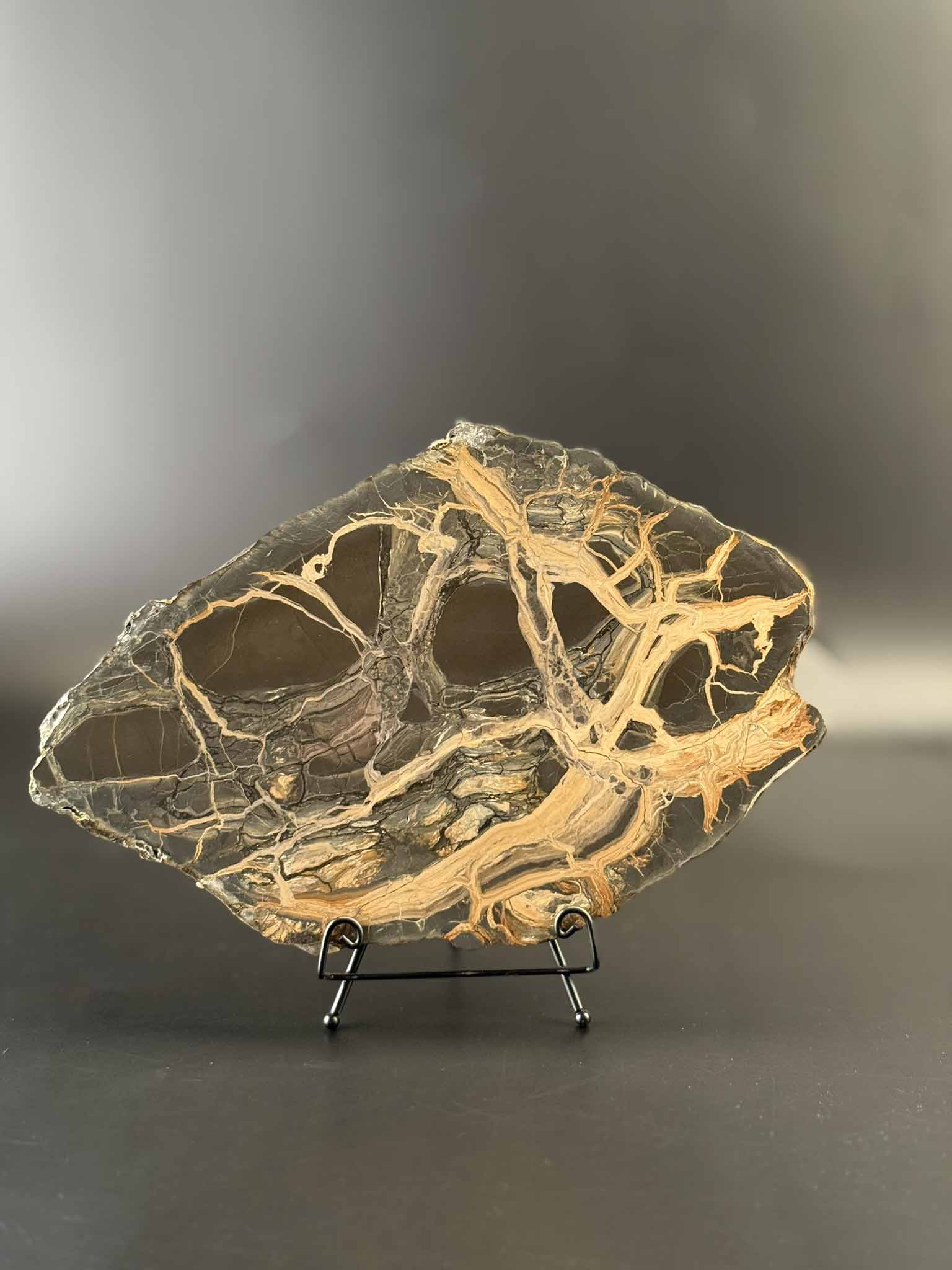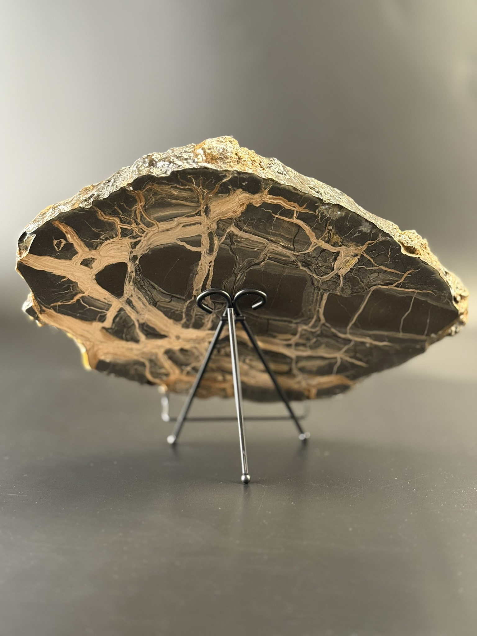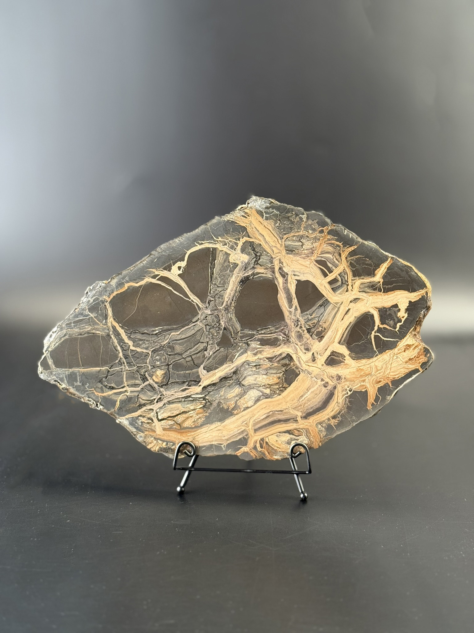 Сенгилитовый спил. Подставка в комплект не входит. По запросу наши менеджеры могут подобрать для Вас подходящие варианты по подставкам.