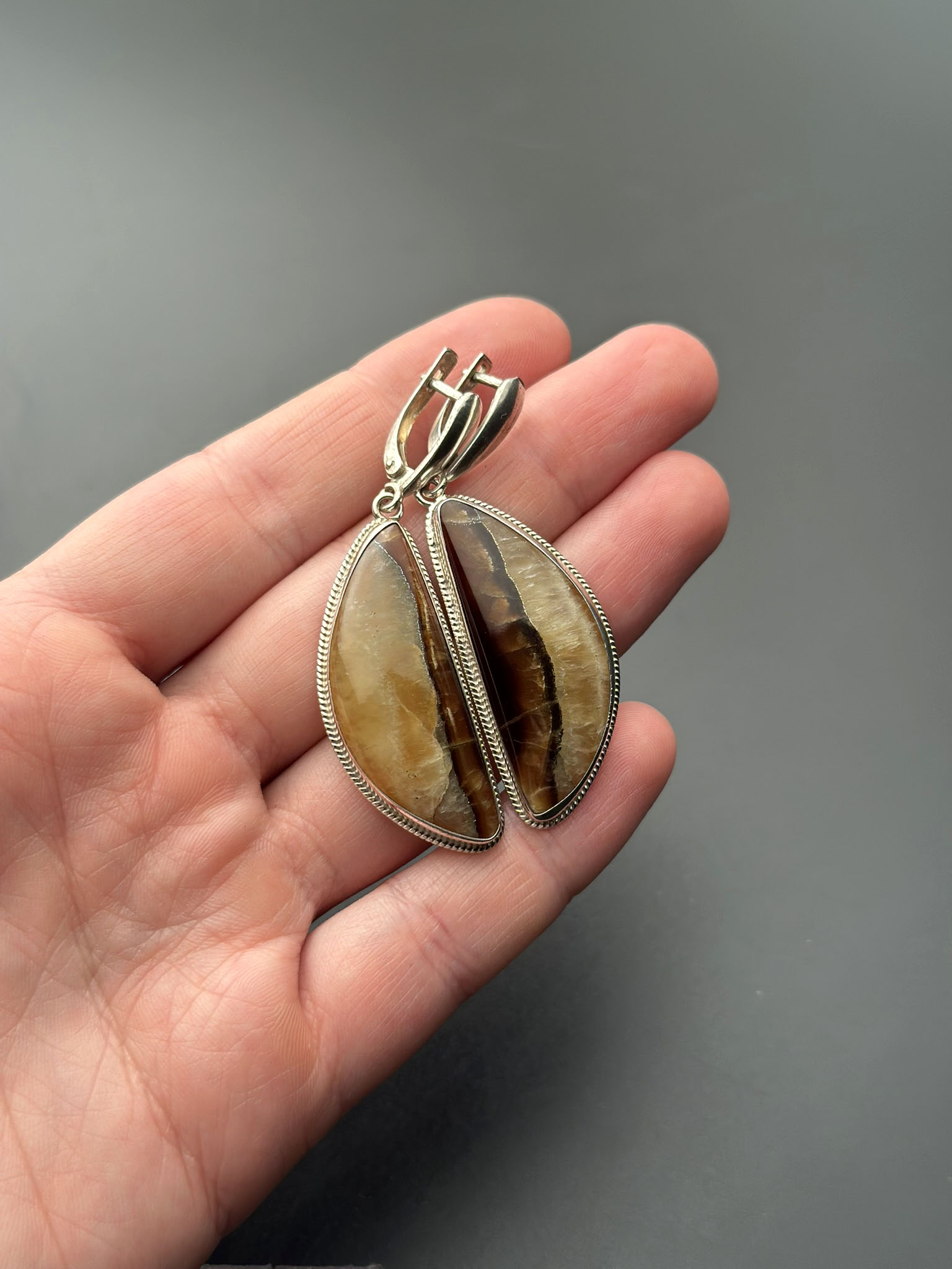 размер камня: 39х15 мм; размер серьги: 58х16 мм;