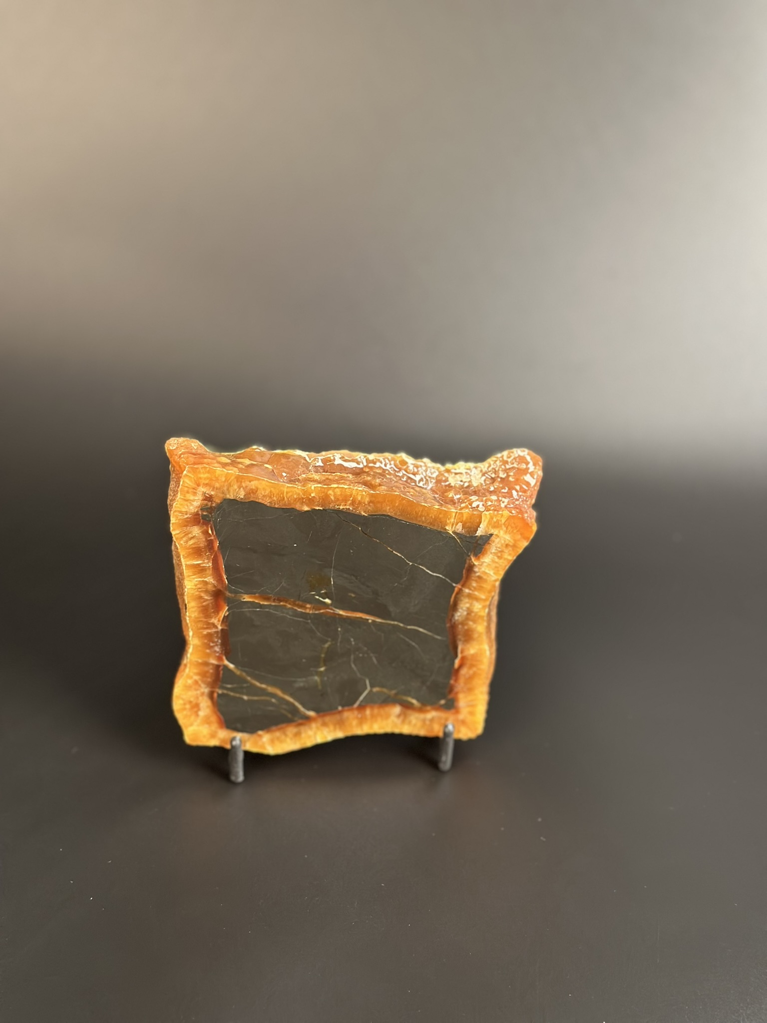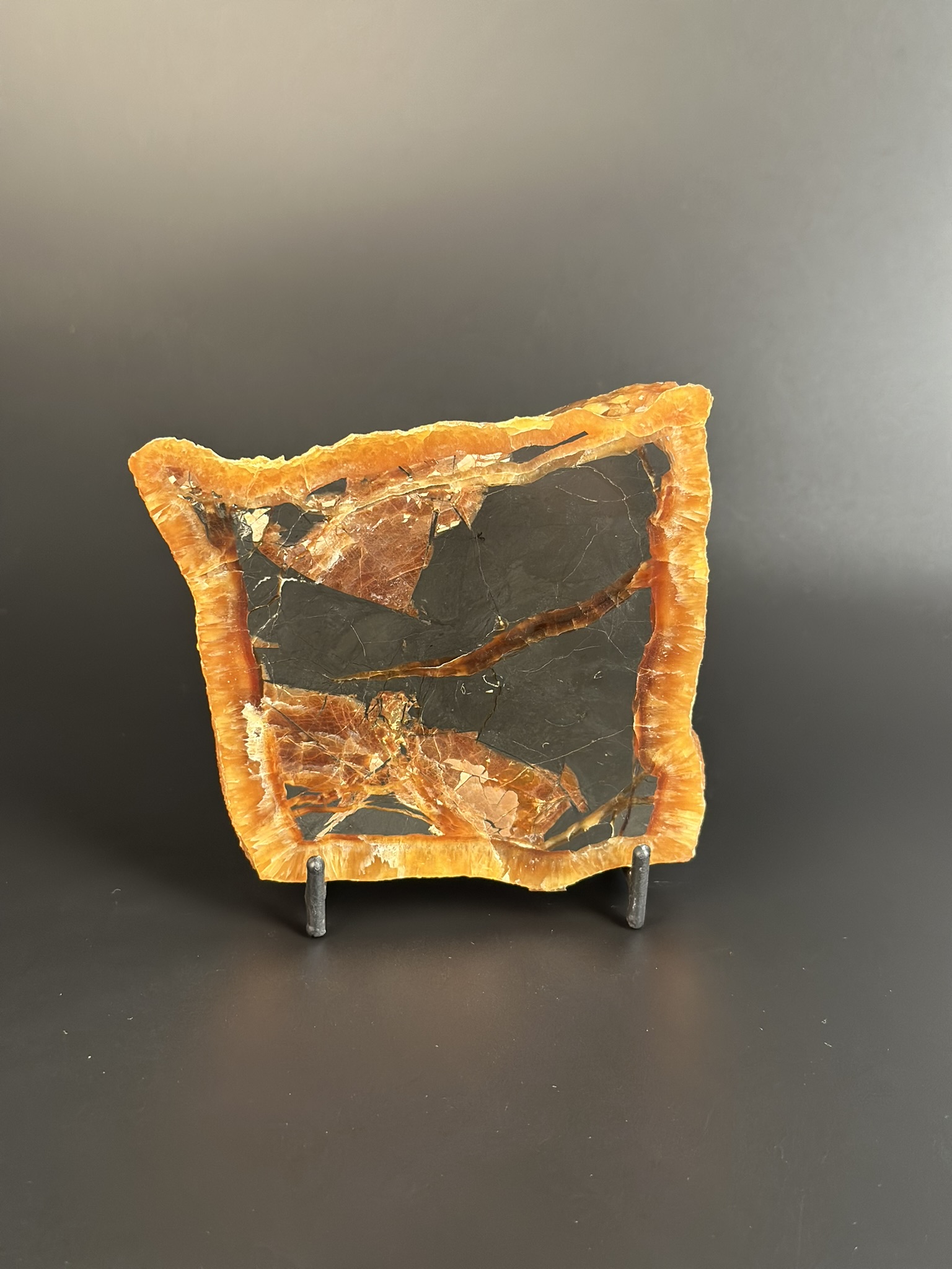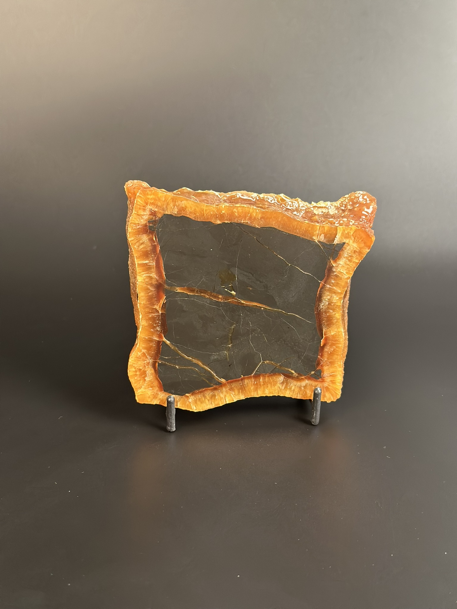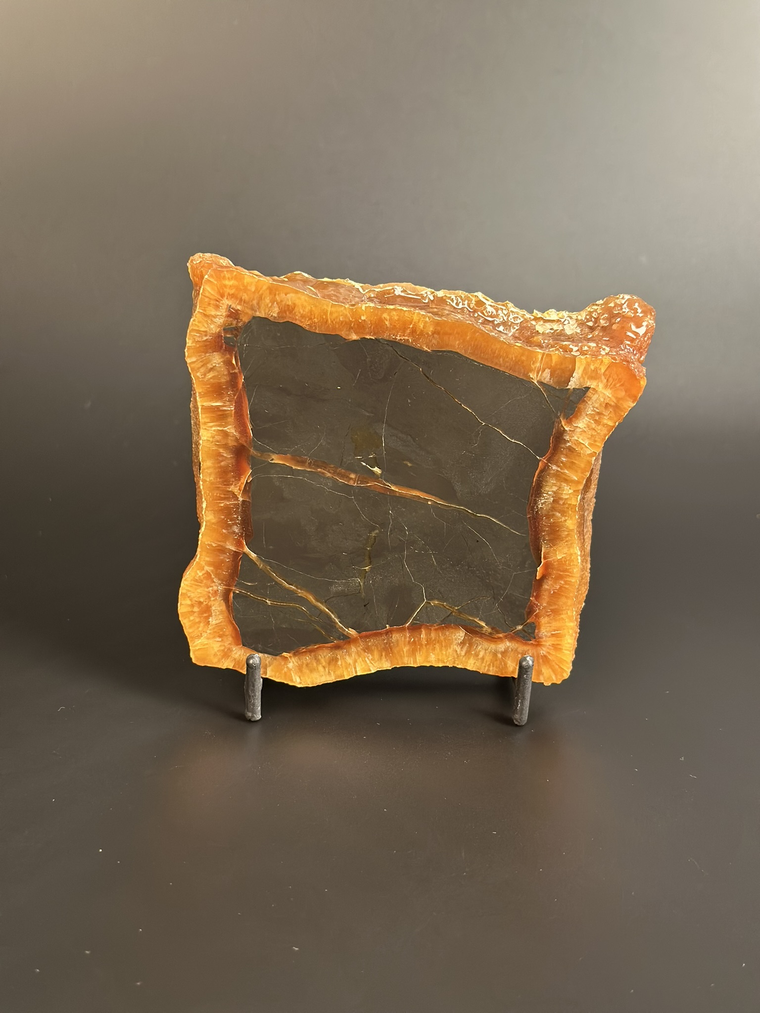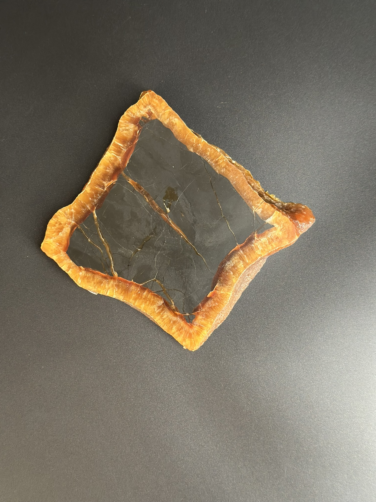Симбирцитовый спил имеет включение ископаемого перламутра.