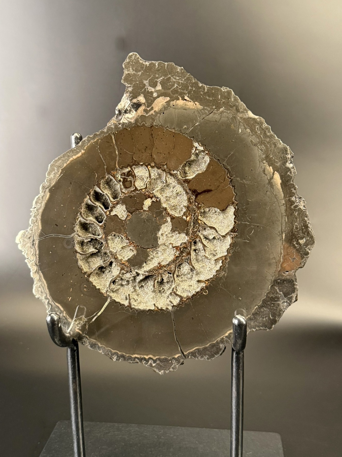 Аммонит рода спитоницерас, распиленный на две равные части. Найден на территории Ульяновской области.