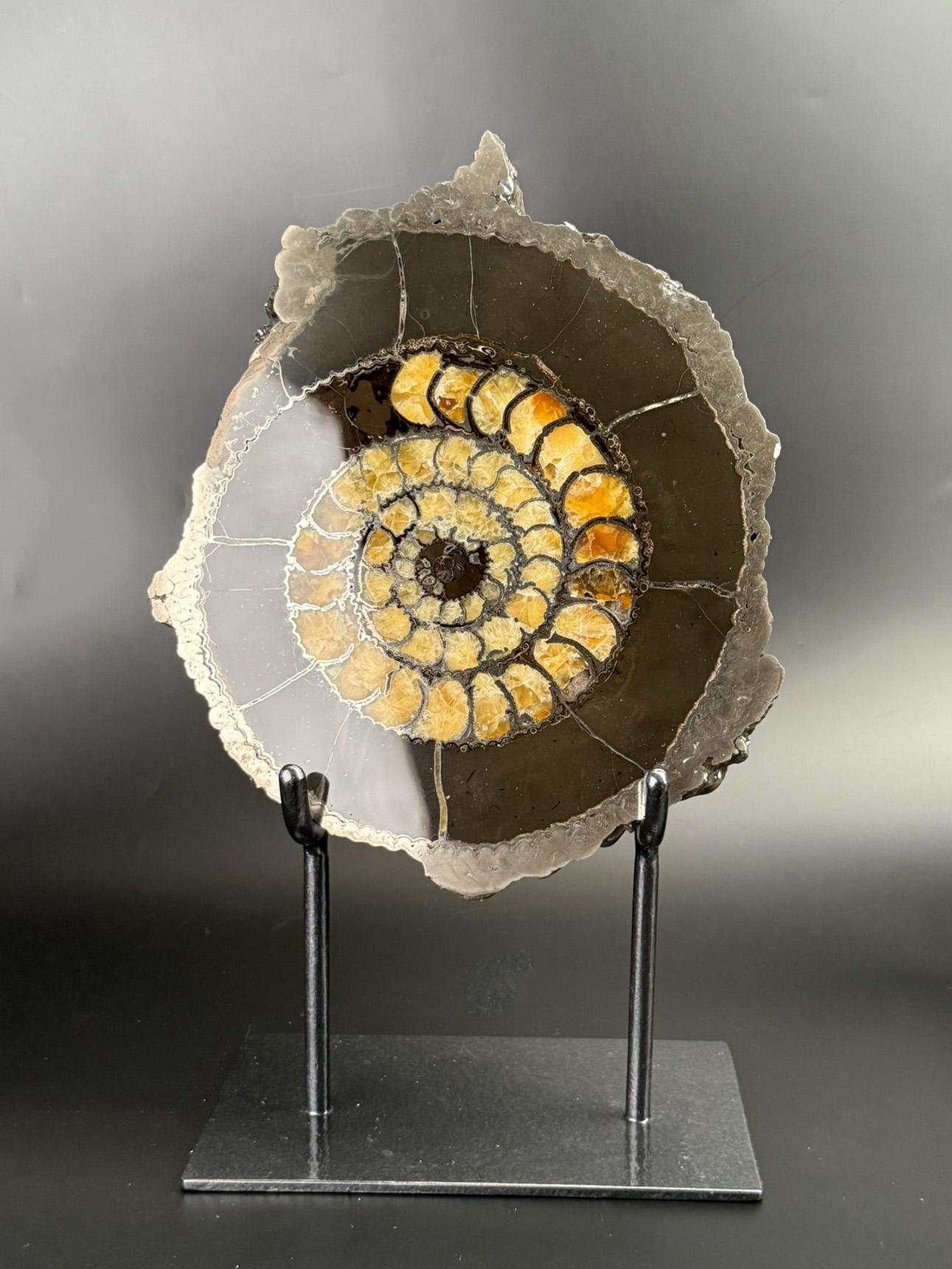 Данный аммонит имеет редкое кальцитовое заполнение.